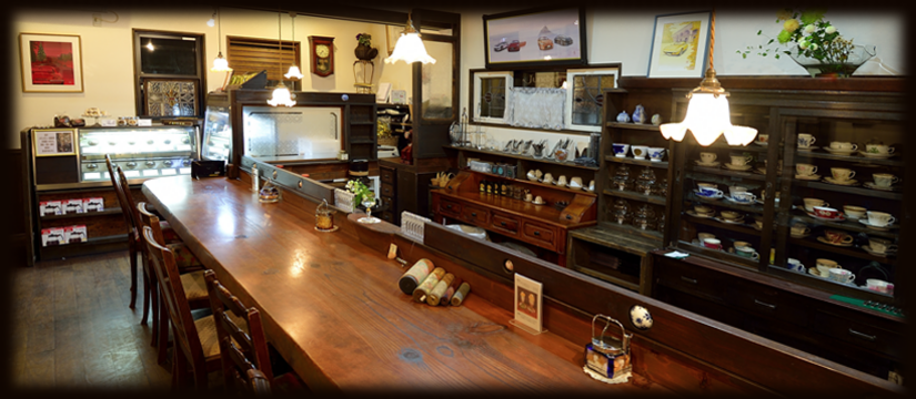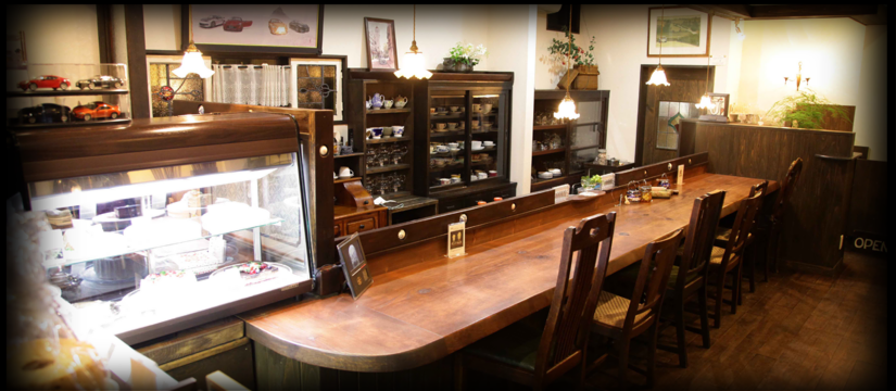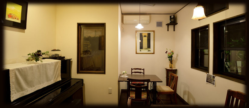 アンティークの家具にオーナー自らいけた生花やオーナーのご主人が描いた絵をディスプレイした店内で、ゆっくりくつろぎ・至福の時を過して頂けたら幸いです。